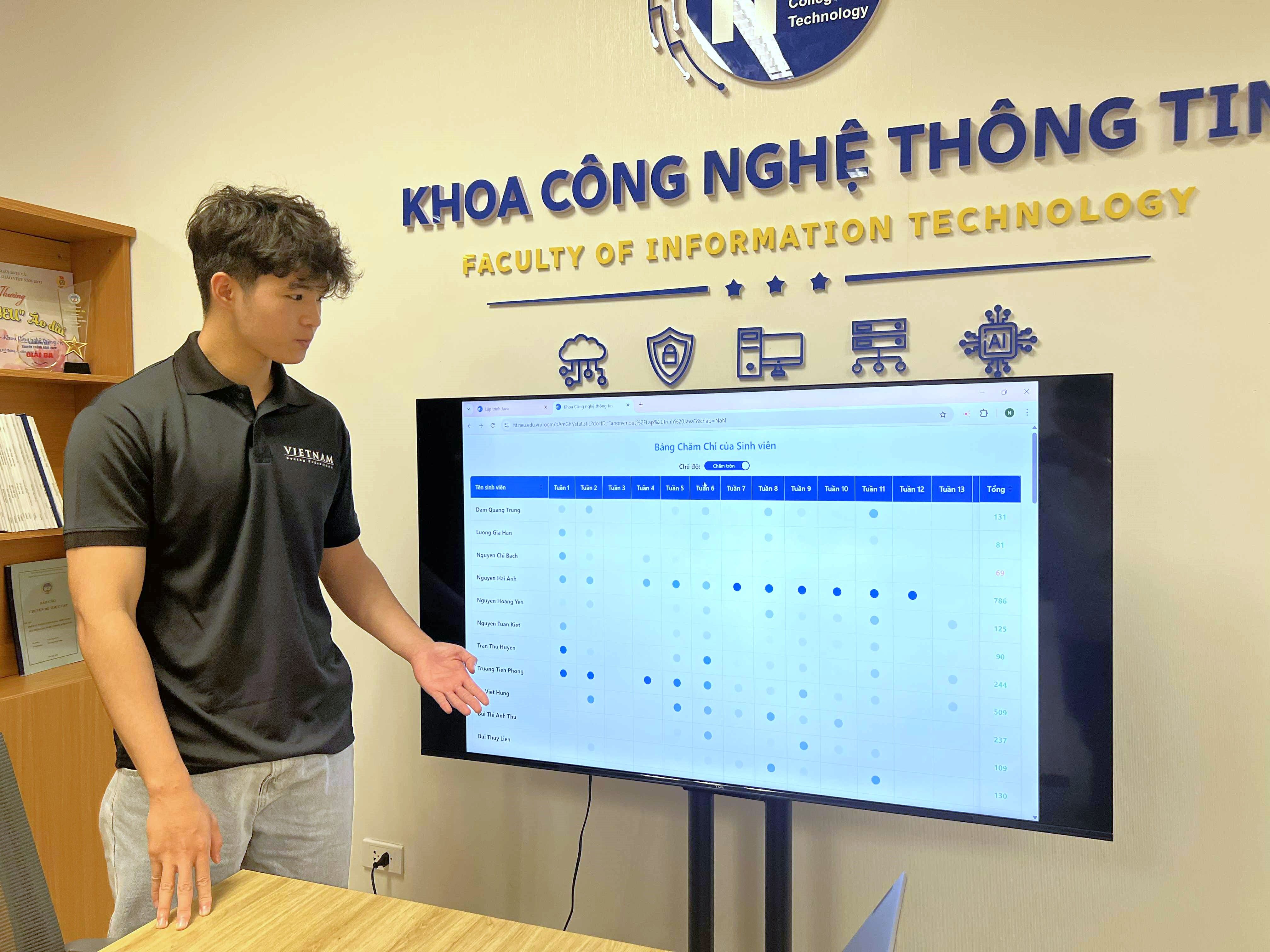 Sáng ngày 14/4/2025, trong chuỗi hoạt động tập huấn của Khoa Công nghệ thông tin, sinh viên Nguyễn Đức Thuận đã trình bày về hệ thống SmartDoc với tính năng phân tích mức độ chăm chỉ của sinh viên.