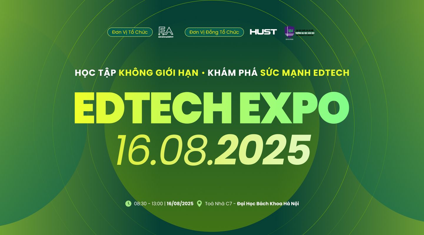 EDTECH EXPO 2025 sẽ diễn ra ngày 16/8/2025 tại Đại học Bách Khoa Hà Nội, quy tụ 40 doanh nghiệp Edtech và hơn 1000 chuyên gia giáo dục.